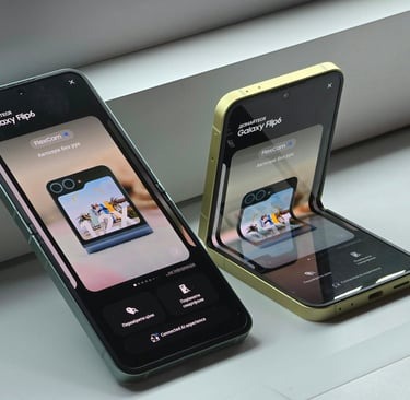 Aberto, ele vira um smartphone grande, com tela linda e ótima para vídeos, redes sociais e produtividade. Fechado, fica compacto, fácil de guardar no bolso e com uma tela externa super útil para notificações, selfies e apps rápidos.